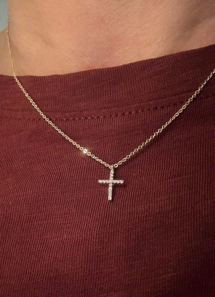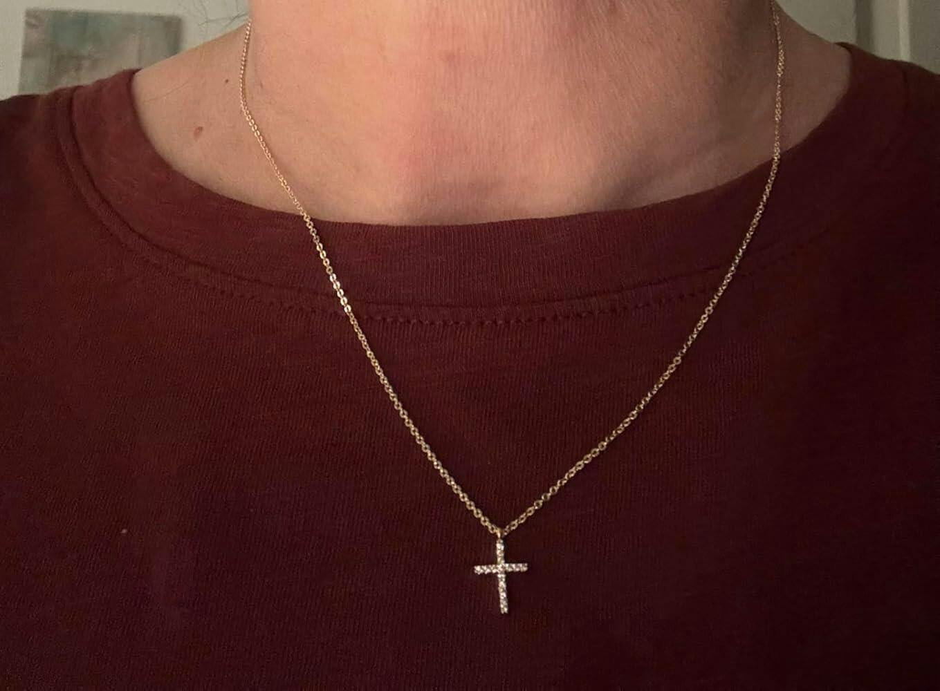 I am obsessed with this necklace, I have been wanting a dainty cross necklace and this one is perfect. Its a nice true gold and the diamonds look real. I would say this one doesn't disappoint. Its made well, looks beautiful, and is lightweight.