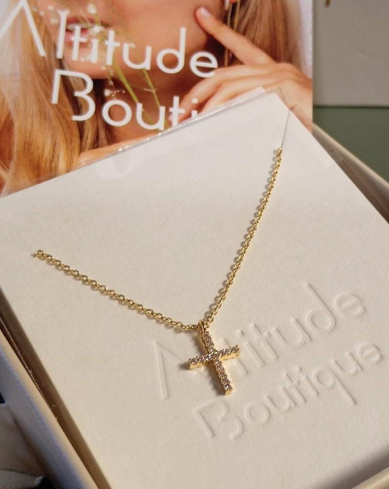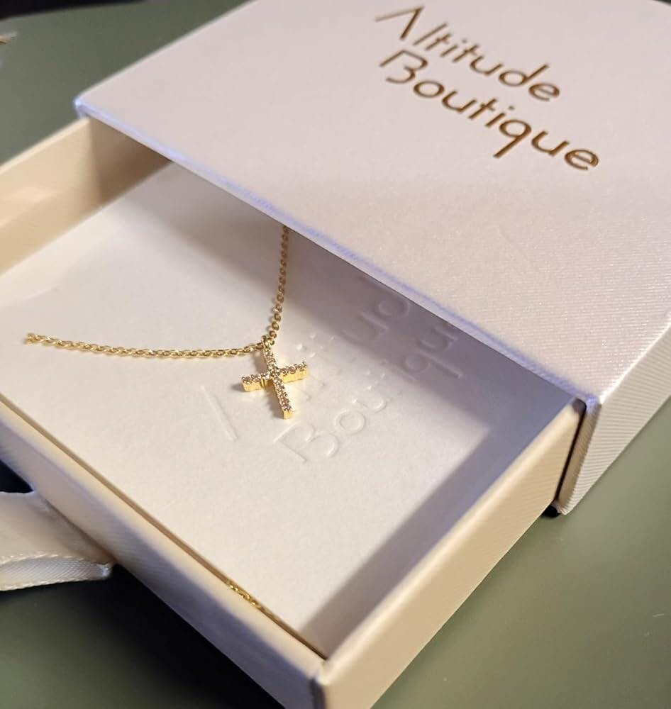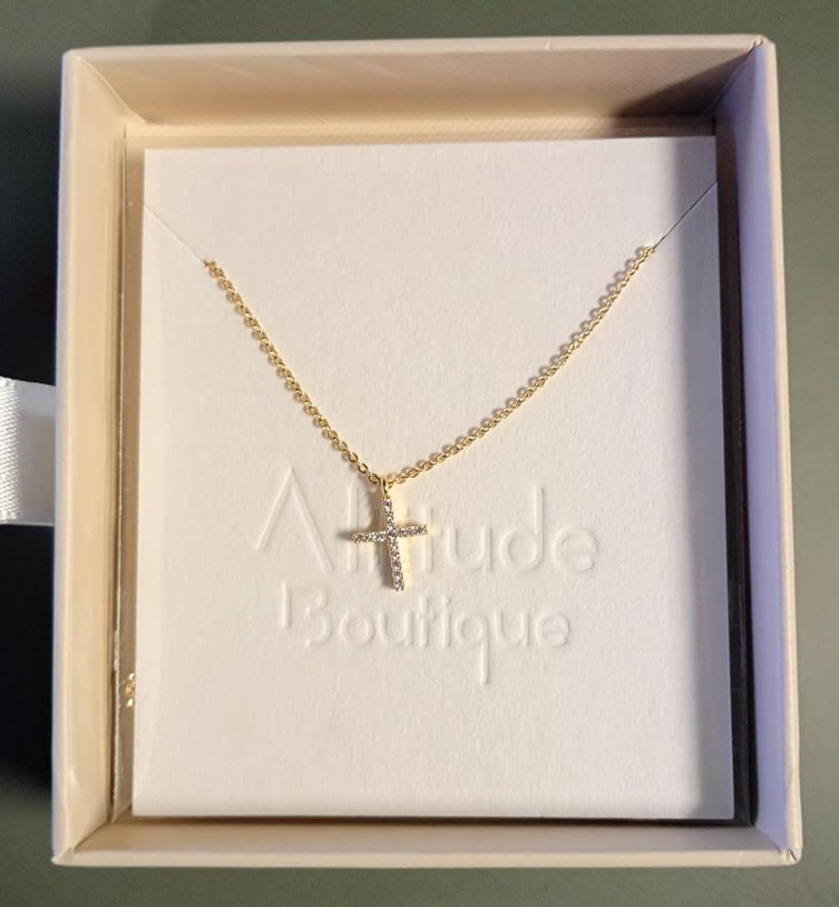 This Altitude Boutique cubic zirconia cross necklace is absolutely beautiful! I love the dainty design—it’s minimalist yet sparkly, and the CZ bezel adds just the right amount of shine without being over the top. The pendant feels high-quality, and the adjustable chain makes it easy to wear at different lengths depending on your outfit.The 14K gold-plated (or rhodium-plated) brass feels sturdy and looks classy, making it a perfect everyday necklace or a thoughtful gift for someone special. It’s elegant, simple, and meaningful—a great way to show faith in a stylish way.Highly recommend for anyone looking for a delicate, versatile cross necklace!