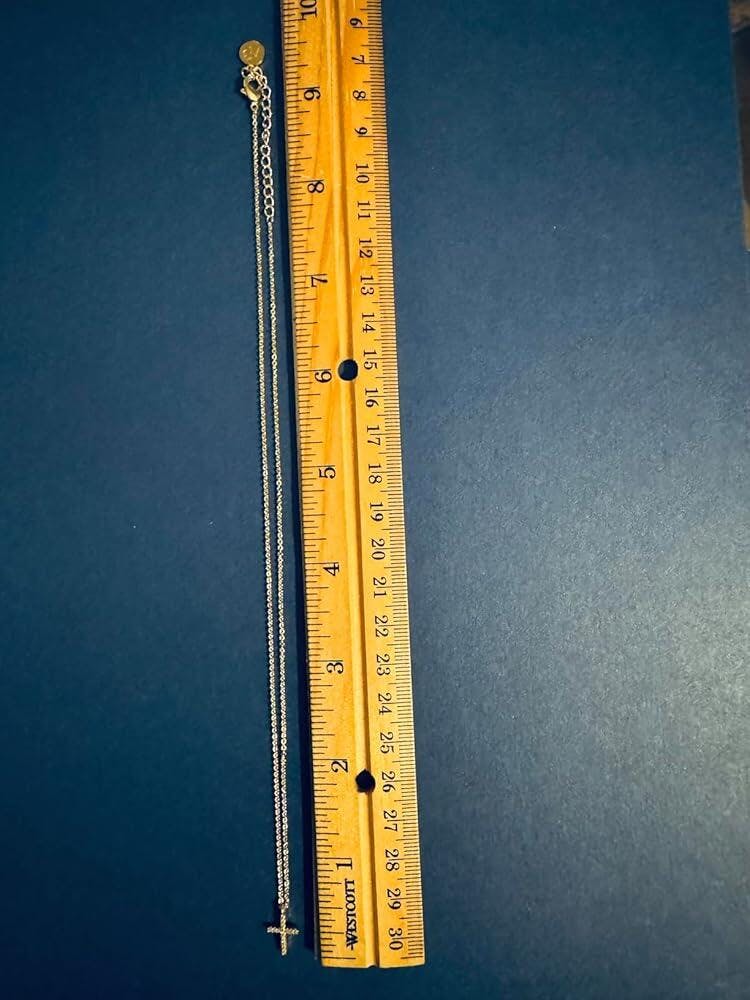 I am really happy with this necklace. Even when a description shows the dimensions of a pendant, for some reason it always seems to look either bigger or smaller in person than I expected. It's 18" which is a great length - but you can shorten it if you like. I think it has just enough sparkle - it is dainty and the bars of the cross are the appropriate lengths to me - they are proportionate. It is a way to show your faith without it being "in your face" and I plan to wear it most days. I wouldn't get it wet but so far it doesn't show any signs of changing colors, etc. I think it's pretty good quality, especially for this price point!